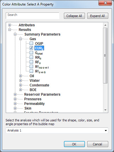 To add / create a bubble map, start by selecting wells for the bubble map. In the GIS Configuration pane, click the + icon and select Add Bubble Map Layer.