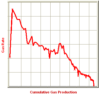 All production can be characterized as having an initial transient flow period followed by a boundary-dominated-flow period. During the transient period, the reservoir pressure at the flow boundary remains constant at the initial reservoir pressure, and the flow boundary moves outward from the well through the reservoir. This portion of a well’s flow is characterized by very high decline rates. When the flow boundary reaches an actual reservoir boundary, or meets with a flow boundary of another well, the reservoir pressure begins to decline, and the well enters the boundary-dominated- flow period. It is in this period that traditional decline methods (that is, Arps) can be used.