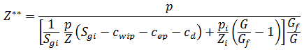 The reservoir types considered in the advanced material balance equation are: overpressured reservoirs, water-drive reservoirs, and connected reservoirs. The total Z** equation is shown below with the modified material balance equation.