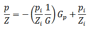 When plotted on a graph of p/Z versus cumulative production, the equation can be analyzed as a linear relationship. Several measurements of static pressure and the corresponding cumulative productions can be used to determine the x-intercept of the plot - the original gas-in-place (OGIP), shown as G in the equation.