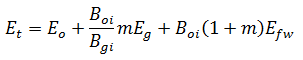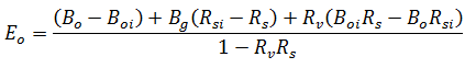 If the reservoir to be analyzed has no initial free gas, the free gas terms of the equation can be eliminated. This equation is now much simpler to linearize. In the equation shown below, the total expansion term is split into the oil and water / formation expansion terms. Once again, the inclusion of water influx is such that it is assumed to be known.