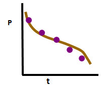 At typical reservoir conditions, gas compressibility is orders of magnitude greater than that of the formation rock or residual fluids. In reservoirs at high initial pressures the gas compressibility is much lower, in the same order of magnitude as the formation. A typical example of this is an overpressured reservoir, which is a reservoir at a higher pressure than the hydrostatic column of water at that depth — in other words, a higher than expected initial pressure given the depth. In this situation, ignoring the formation and residual fluid compressibility results in over-prediction of the original gas-in-place. The initial depletion shows the effects of both depletion and reservoir compaction, and the slope of a p/Z plot is shallower. Once the pressure is much lower than the initial pressure, gas expansion is dominant and a steeper slope is observed on the p/Z plot. When matching on the shallower slope of this bow-shaped trend, all later pressure data is lower than the analysis line, and the estimated original gas-in-place is higher than the true original gas-in-place. The plot below shows an overpressured reservoir matched on the initial data, and the analysis line of the advance material balance method.