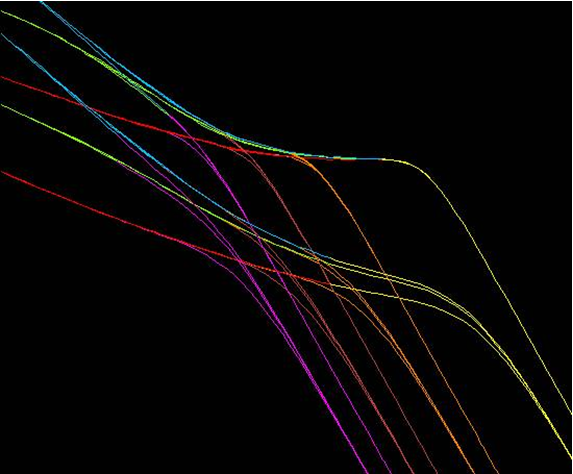 In the Blasingame, Agarwal-Gardner and Normalized Pressure Integral methods, the typecurves are scaled such that there is convergence onto a single boundary-dominated stem (unit slope). This is achieved through the use of a dimensionless time that is based on area (tDA or tDd). One consequence of this type of scaling is that there are numerous transient stems. If a dimensionless time based on well radius (tD) is chosen instead, there will be a single transient stem with a series of boundary-dominated curves. When viewing a single typecurve (e.g., reD = 28) there is no difference between these two scaling formats (see figure below). However, when viewing all the typecurves together, the transient presentation provides a more convenient base for analysis of transient data. This follows from the fact that selection of an appropriate transient stem is not required.