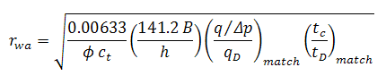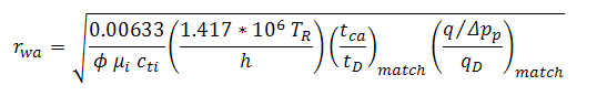 Solve for apparent wellbore radius from the definitions of dimensionless time and permeability: