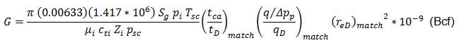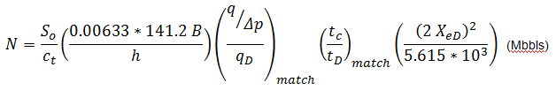 Typecurve analysis is done by selecting a match point, and reading its coordinates off the data plot (q / Δp and tc) match, and off the typecurve plot (qD and tD) match. At the same time the stem value "re / rwa" (re / xf for fracture typecurves) of the matching curve is noted.