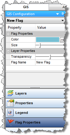 If you add a flag layer (click the + icon on the GIS Configuration pane), a corresponding node in the tree structure is added. You can show or hide flags by selecting or deselecting their checkboxes.