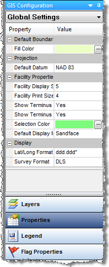 - Properties — are used to fine-tune the GIS map. Property descriptions are displayed at the bottom of the pane as they are selected.