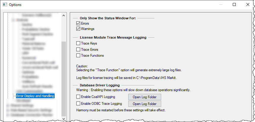 Important: The log files generated from CoalAPI and ODBC trace logging may contain proprietary information (for example, server names, well or analysis information. etc.). We recommend you consider the content of these files before sharing with others.