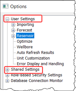 Production Editor Injection Sandface Calculations — select this option to enable injection rates when performing sandface pressure calculations in the Production editor. For more information, see injection calculations. By default, this option is deselected. This default setting ignores injection rates, and thereby uses the same logic as legacy versions of Harmony Enterprise.