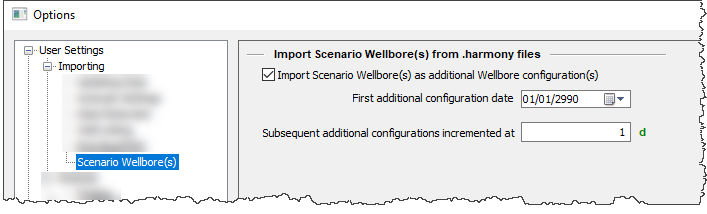 When importing such files to Harmony Enterprise, you can bring Scenario Wellbores as additional wellbore configurations for the well they belong to. Configurations need to have dates assigned to them, so you can set the date for the first additional configuration, and the subsequent configurations are set at the dates that are incremented after this first date.