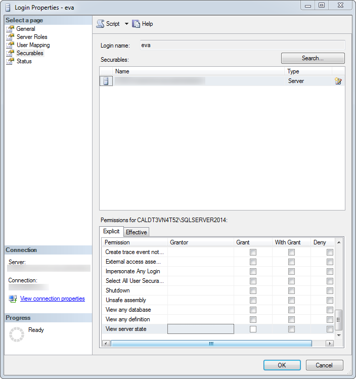 If the View server state checkbox is deselected in SQL Server Management Server, you are not able to see this content. If this is an issue, contact your database administrator. For more information, see active directory.