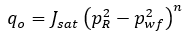 This method matches your data to the Fetkovich equation. A minimum of two data points are required. The generalized Fetkovich equation is as follows: