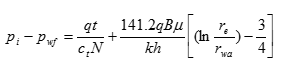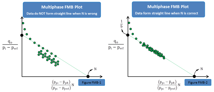 The multiphase FMB analysis is structured in a format similar to the above equation, but pressure is replaced by an appropriately defined multiphase pseudo-pressure.