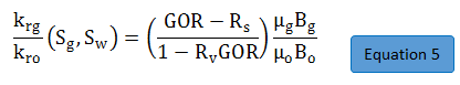 iv: The relative permeability curves are reformulated in terms of krg / kro ratios versus saturations. The krg / kro ratios will be a single curve for two-phase (gas / oil) flow, but become a surface, when water production is included.