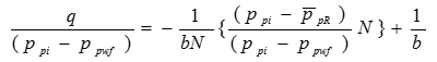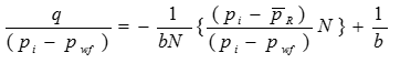 The x-intercept is the desired value of N. The y-intercept (1/b) is the (pseudo) Productivity Index, which is defined as: