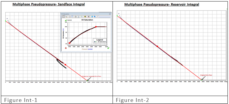 As a result, because analysis lines are dynamically calculating the pseudo-pressures, the line movement can be slow, when there is a large number of data points. Figure Int-1 and Int-2 below demonstrate that the Reservoir Integral is more effective in straightening out the multiphase data than the Sandface Integral.