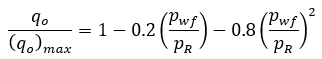 This method matches your data to the Vogel and straight-line IPR equations described above. A minimum of one data point is required.