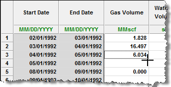 Harmony Enterprise often displays data in tabular form and uses functionality similar to Excel. For example, you can click-and-drag the bottom right corner of a table cell to copy your data to a range of rows below. The cursor changes to a large X, and you drag the table cell contents to the next row or rows.