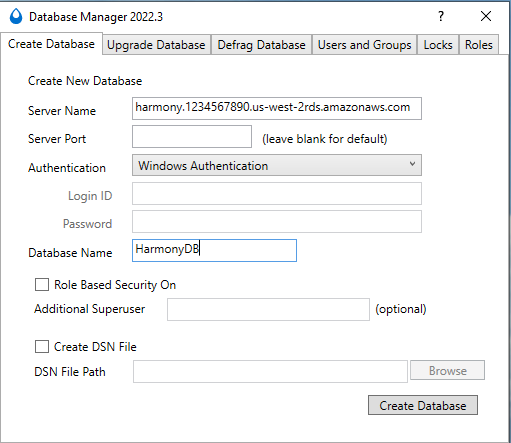 If you do not have an existing Harmony Enterprise database on-premises that requires migration into the cloud, you can create a blank one in RDS by following these steps: