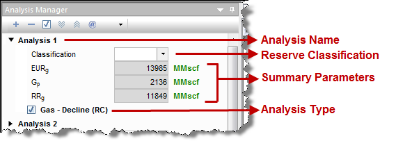- - copy an oil decline into a gas decline analysis (or vice versa). The results of both analyses are displayed under the parent analysis name in the Analysis Manager.