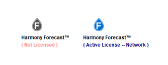 The Harmony Enterprise startup screen has a license icon for each module that indicates whether or not you have been granted a seat. For example, a green Harmony Forecast™ icon means that you have access to the Forecast module, while a grayed-out icon indicates that you do not have access. Clicking the Forecast icon, Reservoir icon, or Optimize icon opens the Licensing dialog box.