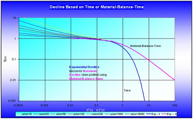 The rearranged material balance time equation is significant; if the pressure-drop normalized flow rate is plotted vs. material balance time, the data will follow the harmonic branch of the Fetkovich or Arps typecurve (regardless of whether production is constant or variable flow rate, or constant or variable sandface pressure).