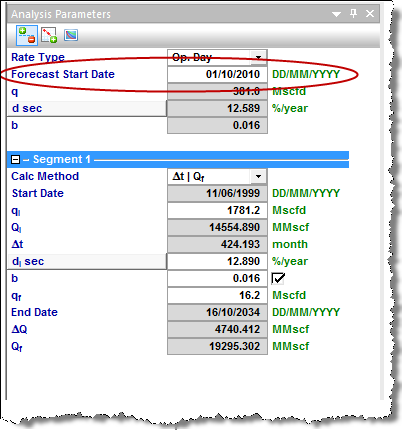 The first and second segments are always continuous, with the end date of the first segment equal to the start date of the second segment. As well, the instantaneous decline rate at the end of the first segment is equal to that at the beginning of the second segment.