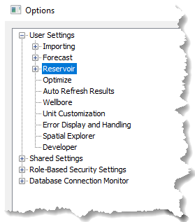 Production Editor Injection Sandface Calculations — select this option to enable injection rates when performing sandface pressure calculations in the Production editor. For more information, see injection calculations. By default, this option is deselected. This default setting ignores injection rates, and thereby uses the same logic as legacy versions of Harmony Enterprise.