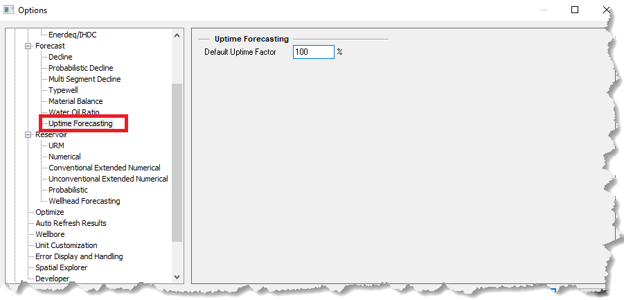 You can set the parameter that initialize Uptime Forecasting. This will apply on Analysis Parameters section to all Declines Analysis except to Duong and Stretched Exponential Declines. Harmony Enterprise use 100 as the default value.