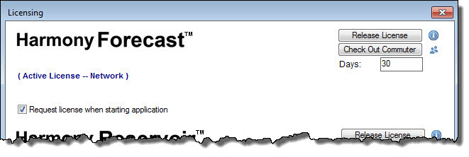 Release License button —releases your network seat. This button is only visible if you use a network license seat, and this button is only enabled if more than one seat is used, because Harmony Enterprise requires at least one seat to be used.