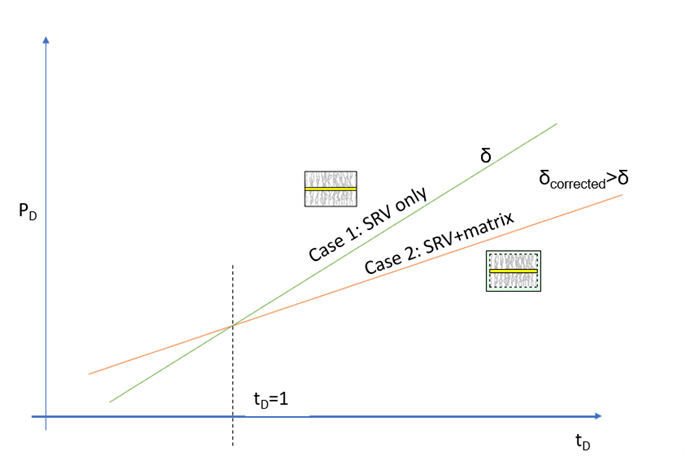 δcorrected- is the value we actually use for the first region. It describes the behaviour of the flow within SRV while considering the presence of some flow from the matrix during the first characteristic flow.
