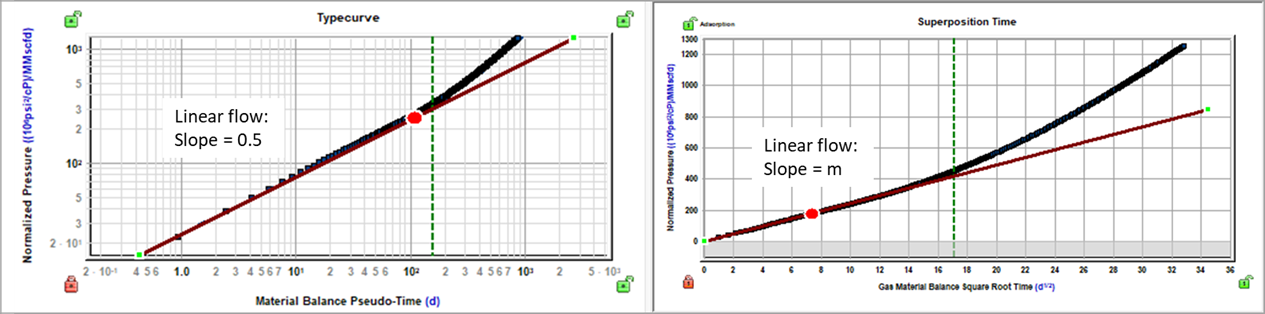 This special case will result in a solution that follows linear flow (slope = 0.5) followed by boundary-dominated flow.
