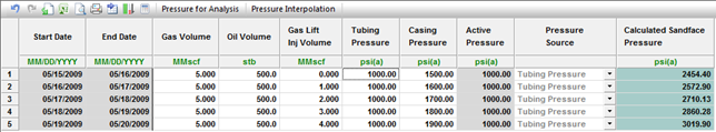 Just as in the conventional case, the wellbore calculations assume that none of the injected gas is lost to the reservoir(s). Note that pressure calculations differ depending on your pressure source (that is, tubing or casing).