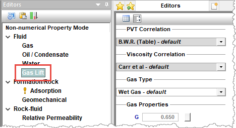 The properties of the injected gas may be different from the properties of the produced gas. You can enter your gas lift properties separately from produced gas properties in the Properties editor.
