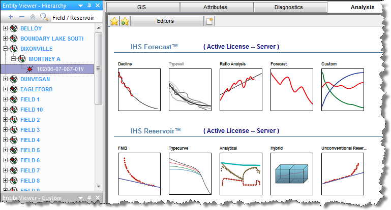 After you have selected an entity for analysis, that entity is locked until you select another entity. In other words, the lock is released when you click another entity. If another user tries to open the same entity for analysis while the lock is in place, a message is displayed in the main pane and the Status Window. There is no way to force the release of the well, but the username with the locked well is displayed in the Status Window.