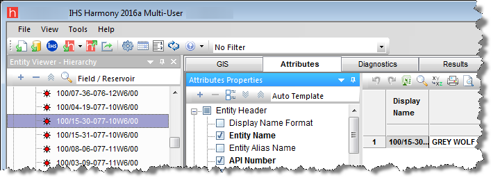 The Attributes tab displays well information in a