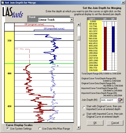 Merge at Null Values - Click whether null values in either the original or imported curve are replaced by values from the other.