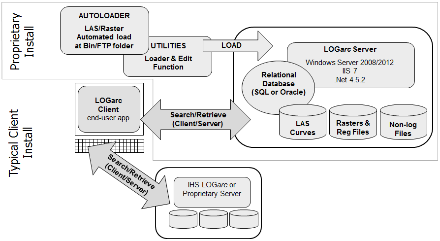 LOGarc is a client-server application that enables you to search and retrieve well log data from the LOGarc database. Any type of data that can be associated with a given well ID can be loaded into LOGarc: LAS files; raster images; calibration files; well reports, and so on. LOGarc can then search and retrieve these files.