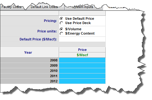 Or, click Use Price Deck and enter a price ($ / bbl) for each year of the forecast duration in the Year / Price table.