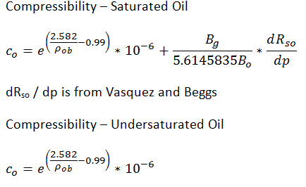 The oil compressibility in this equation is obtained from the Vasquez and Beggs correlation.