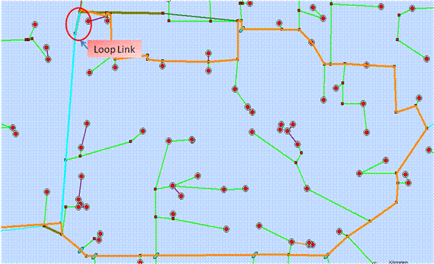 6. Press Ctrl-L and hover over the loop link that was just added to view the loop – note the loop that should go through the two delivery points
