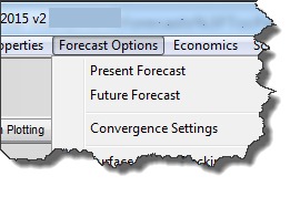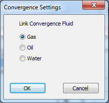 Convergence Settings — to select the fluid applicable to the model in order for the forecast to converge. This field is not selectable if equations of state (EOS) are selected. Changing the convergence fluid requires you to run the future forecast again.