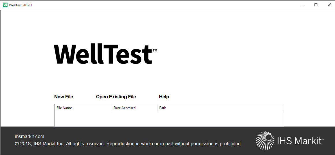 After launching WellTest, a startup screen opens.
