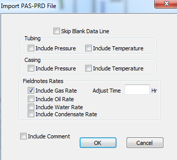 There are two types of PAS files that you can import: PRD (production data) and TRG (gauge data).