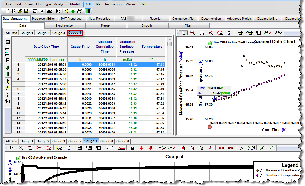 Your gauge data opens in a new tab in the Data Management, Data sub-tab area.