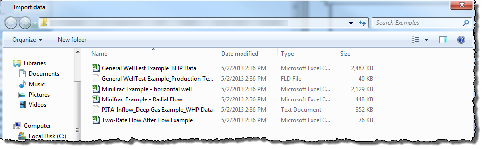 4. Select the data you'd like to bring in to WellTest, and click OK.