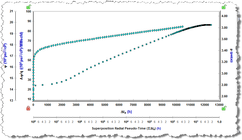 Plots or datasets from anywhere within WellTest or another Fekete application can be displayed on the Comparison Plot tab. One common use for this is to overlay typecurve responses from different flow / shut-in periods within the same test, or from analog wells.
