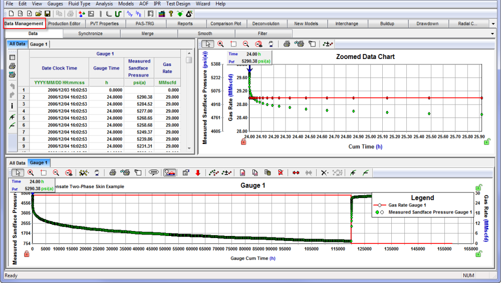 The top right pane displays the active dataset in the Zoomed Data Chart.