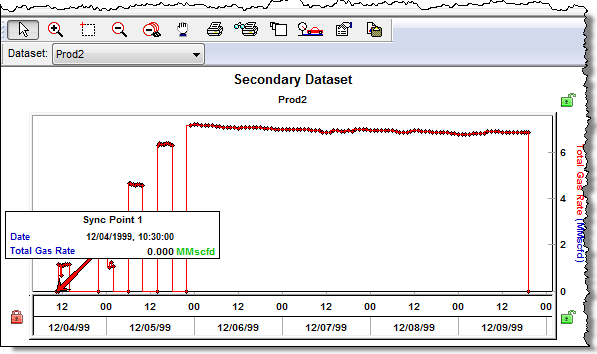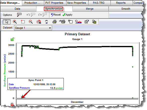 In the Synchronize sub-tab, you can synchronize data from different gauges, or datasets contained within a single gauge.