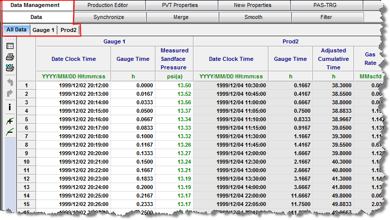 | Note: | To open this sub-tab, at least two valid gauges must exist. |